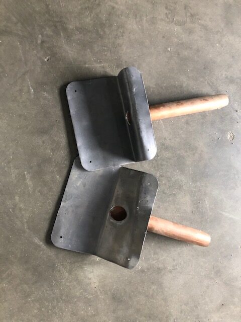 Een ‘Spuwer’ kan gebruikt worden om hemelwater niet direct langs een gevel te laten lopen. Deze lood/koperen spuwer heeft een diameter van 42mm en is 250mm lang.