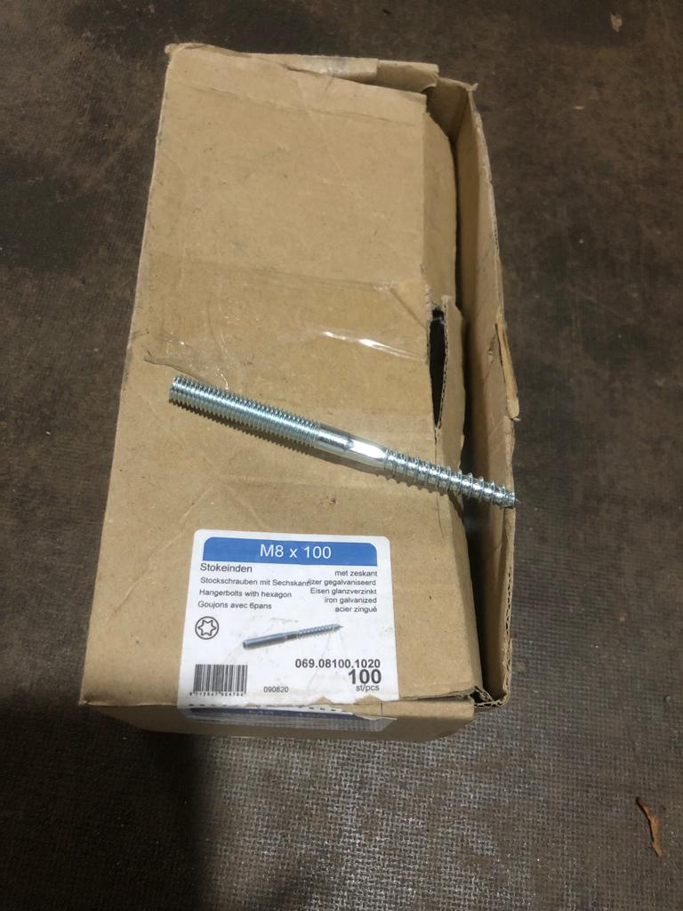 Stokeind/Houtdraadpen M8 x 100 verzinkt